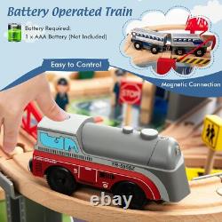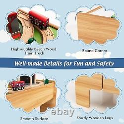 Moreover, magnetic connection of trains provide a more authentic experience for children. [Safe and Stable Material]: This train table is made of solid natural wood to ensure the stability and life time service. Meanwhile, round corners are designed to prevent harm because of accidental bump.