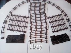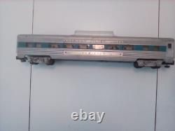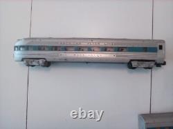American Flyer Diesel locomotive Blue Stripe Passenger train set. Includes #466 Diesel engine, #960 Columbus passenger car, # 962 Hamilton Observation car, #963 Washington rear passenger car. This is an S gauge two rail system and includes 31 track segments (20 curved, and 11 straight), plus two manual switches. The unit has been in storage at least 50 years. Pictures were taken this year.