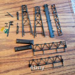 This is a used in box Bachman Golden Spike train set. Comes with all you see in the pictures. Some items are missing, but most of the items are included. Tested and works, lights up and goes! The engine railing is coming away from the body of the train, which I show in the one photo. Box has some damage but overall, pretty good. I'm not an expert on trains, but I can send more photos or check on any concerns. Signal bridge parts (some pieces may be missing). Suburban station (some pieces may be missing).