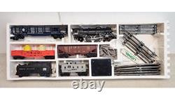 LIONEL ROCK ISLAND LINE 6 PIECE TRAIN SET. The Lionel Rock Island Line 6 Piece Train Set is a vintage model railroad set from 1976, featuring a colorful multicolor design. This ready-to-go track set includes six pieces of track, perfect for creating a transportation-themed display. The set is part of the Rock Island Line franchise and operates on O gauge tracks. With a C-5 Good grade, this pre-built set is sure to delight collectors and hobbyists alike.