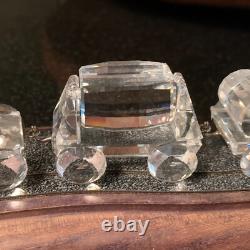 Swarovski Crystal 5 Car Figurine Train Set with Wooden Track 6 pieces Pristine