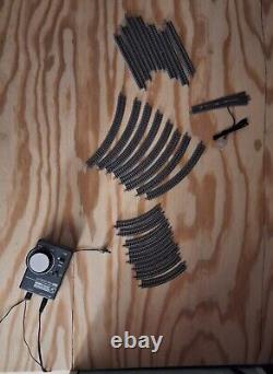 Z GAUGE Train Set 3 Working Engines with working directional lights. 4 peices of Rolling Stock 24 Pcs Of Track + Turn In track with controler switch or manual. Everything pictured was tested and found to be in working order.