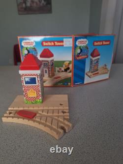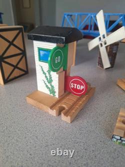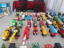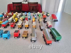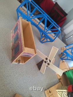 Il s'agit d'un énorme lot de trains, de rails et d'autres accessoires en bois de Thomas & Friends. L'ensemble comprend une variété d'articles, tous inspirés de la célèbre émission pour enfants Thomas le petit train. Les pièces de cet ensemble sont en bois et sont conçues pour être utilisées avec le circuit en bois de Thomas & Friends. Ce lot contient tout ce qui est présenté sur l'image principale. Utilisé et bien joué, des signes d'usure sont évidents partout.