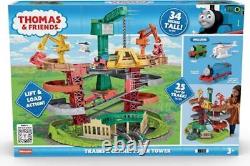 Ensemble de jeu multi-niveaux mesurant plus de 2,5 pieds de haut et présentant des lieux et des personnages préférés de l'émission Tidmouth Sheds avec une plateforme tournante, Brendam Docks avec Cassia, la grue Carly et Cranky la grue, et des poignées pour contrôler où vont les locomotives. Compatible avec d'autres rails, sauf en bois. Connectez et étendez le jeu ferroviaire ! Livré avec une locomotive Thomas motorisée, une locomotive Percy en métal, l'hélicoptère Harold et 4 caisses de marchandises pour le chargement et le déchargement. Pour les amoureux des trains d'âge préscolaire à partir de 3 ans.