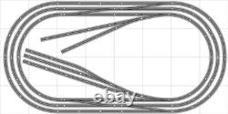 Vous pouvez acheter le matériel roulant et les locomotives séparément avec les noms de route que vous souhaitez, et vous pouvez définir votre propre époque. Utilisez votre imagination pour le décor, les structures, les routes ou les montagnes. Tous nos plans sont disponibles en deux versions différentes, l'une avec des commutateurs DCC et l'autre avec des commutateurs à distance câblée. Le titre du plan vous indiquera quel type de commutateurs vous obtiendrez, à distance câblée ou contrôlés par DCC. La seule différence entre les plans est les commutateurs. Vous pouvez faire fonctionner un système DCC avec l'une ou l'autre version. Les commutateurs DCC n'ont pas de fils et tirent leur puissance des rails.Les commutateurs câblés nécessitent une alimentation accessoire d'un contrôleur. Crazy Model Trains vous facilite la tâche en éliminant les essais et erreurs pour essayer de concevoir votre propre plan. Nous avons de nombreux plans à choisir si celui-ci ne vous convient pas. Le Bachmann E-Z Track est conçu pour les débutants à intermédiaires et est facile à utiliser. Les rails s'emboîtent, ce qui le rend idéal pour un usage sur la moquette ou sur une planche de contreplaqué.