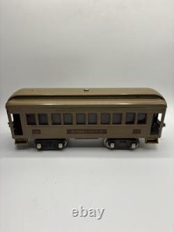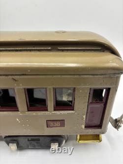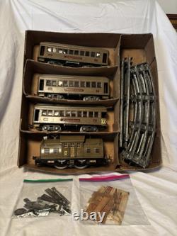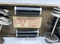 Découvrez la magie d'antan avec le set de train électrique antique Lionel Vintage 342D complet d'avant-guerre. Cette collection classique, emballée dans sa boîte d'origine, incarne le charme et la nostalgie d'une époque révolue. Conçu par la célèbre marque Lionel, c'est un témoignage de l'attrait intemporel des trains miniatures vintage. Le set faisait partie d'une collection que m'a donnée mon défunt voisin. Tous les wagons sont complets, à l'exception d'un.