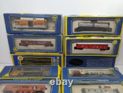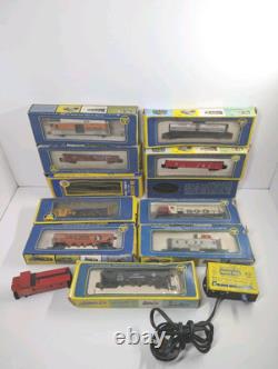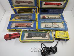 Ensemble de train HO vintage AHM, 2 locomotives, 8 voitures de train, piste complète et bloc d'alimentation