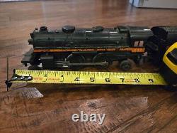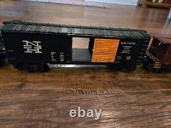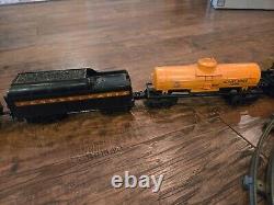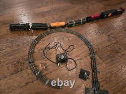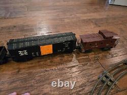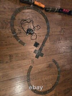 Comprend une locomotive à vapeur et un tender, 4 wagons de chemin de fer et un fourgon de queue. 12 rails courbes, un rail droit et une prise de sortie.