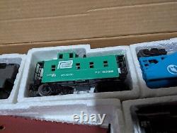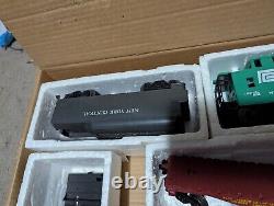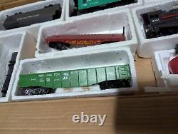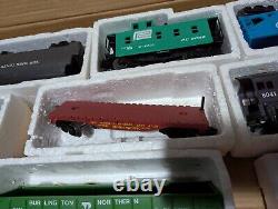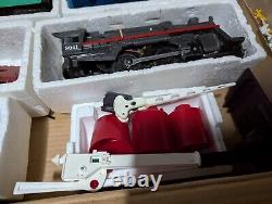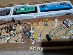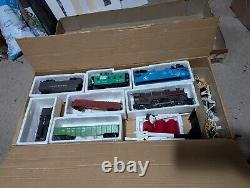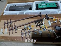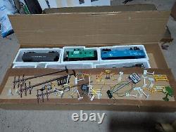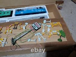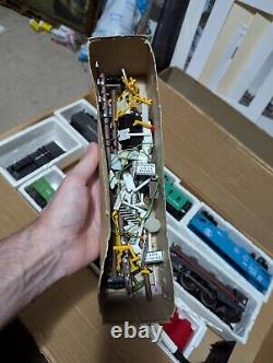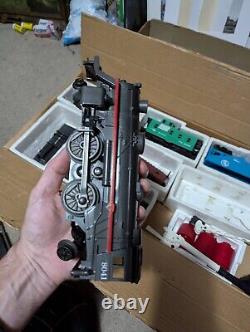 VEUILLEZ NOTER : Le set est incomplet, il manque des rails et d'autres accessoires. Le train semble être en bon état général avec des signes d'usure variés. Il est vendu avec tout ce qui est montré, y compris quelques pièces de décor supplémentaires. Veuillez consulter les images pour les détails/l'état/ce qui est inclus et n'hésitez pas à me contacter si vous avez des questions.