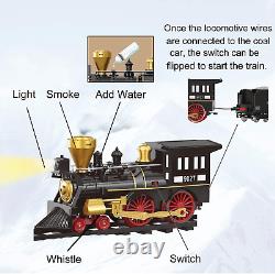 La taille maximale est de 97'' (L) x 41'' (l). Fumée améliorée, sons et lumières réalistes ? : L'ensemble de train jouet a non seulement une cheminée, mais ajoute également 2 sorties de fumée en bas pour un total de 3 sorties de fumée. Cela rend le train plus semblable à un véritable train à vapeur. Lorsque le train jouet fonctionne, le sifflet retentit.
