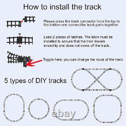 Il dispose d'un interrupteur de démarrage, d'un interrupteur d'atomisation, d'un fonctionnement arrière / avant et d'un réglage de la vitesse. Ces fonctions offrent le plus de commodité et le plus d'intérêt pour le divertissement des enfants. Piste de train de luxe ? Il y a différentes voies dans le paquet pour que les enfants puissent faire du bricolage, ce sont des voies en Y à gauche, en Y à droite, une voie en X, des voies courbes et des voies droites.