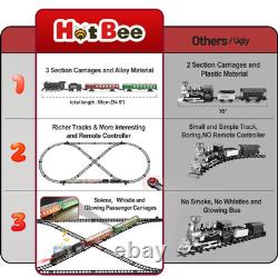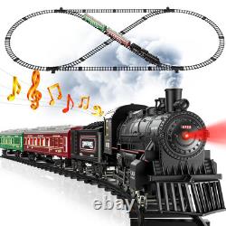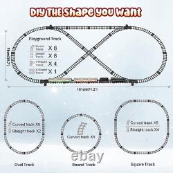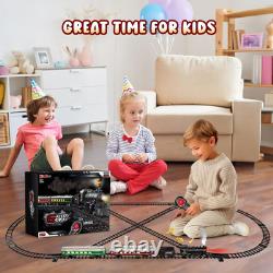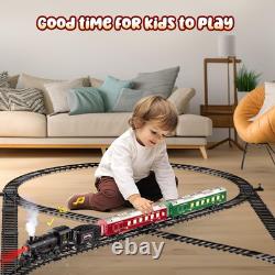 [2025 TRAIN DE LUXE AMÉLIORÉ] :--Cet ensemble de train de Noël en alliage comprend 1 locomotive à vapeur, 1 télécommande, 1 wagon à charbon, 2 voitures de passagers avec lumières (rouge et verte), 8 rails courbés, 8 rails droits, 4 rails en forme de Y, 1 rail croisé ; Nos jouets de train sont équipés d'une batterie lithium rechargeable de 1000mah (3.7v) et d'un câble de chargement USB ; Une fois complètement chargée, le train jouet entièrement équipé tourne autour du sapin de Noël ; Votre enfant peut profiter de quelques heures de voyage heureux [AMÉLIORATION pour "AJUSTER LA VITESSE", "AVANCER" ou "RECULER"] :-- Comparé à d'autres trains jouets ordinaires sur le marché, notre ensemble de train électrique utilise une télécommande ; Les enfants peuvent contrôler la "VITESSE" du modèle de train via la télécommande et faire "AVANCER" le train de Noël, "PAUSER", "RECULER" et les fonctions sont très variées ; Vous pouvez ajuster l'ensemble de train pour enfants âgés de 4 à 8 ans à la vitesse souhaitée, et ces caractéristiques offrent commodité et amusement pour les jeux de vos enfants [AMÉLIORATION pour CONTRÔLER le "SON" et la "FUMÉE" ON ou OFF] :-- L'ensemble de train RC amélioré pour sous le sapin de Noël est équipé de LUMIÈRES, DE BRUITS ET DE FUMÉE RÉALISTES, créant une atmosphère de conduite réaliste ; Plus important encore, vous pouvez également utiliser la télécommande pour activer ou désactiver la "FUMÉE" et le "SIFLET" (veuillez consulter le manuel pour l'utilisation) ; De plus, la fumée provient de l'eau, donc elle est non toxique et inoffensive. Vous pouvez laisser votre famille jouer en toute confiance [VOITURES LUMINEUSES ET LOCOMOTIVE MULTIFONCTIONNELLE] :-- Notre ensemble de train pour sapin de Noël restitue tous les détails d'un train réel ; La locomotive de train exquise peut produire des sons de sifflet et des lumières, et en utilisant la bouteille d'eau fournie avec les ensembles de train jouet pour remplir le réservoir d'eau, elle peut également produire de la fumée ; De plus, les 2 voitures de passagers ont également une fonction lumineuse ; En activant l'interrupteur en bas, une lumière chaude remplira toute la voiture ; Pour rendre l'ensemble de train modèle plus réaliste lors de la conduite de nuit [TYPES DE RAILS PLUS RICHES POUR PLUS DE PLAISIR] :-- Le train du sapin de Noël nécessite simplement d'assembler le chemin de fer en diverses formes (circulaire, ovale et luxueuse), et chaque rail de train est solidement verrouillé, puis allumez l'interrupteur, le train télécommandé se déplacera régulièrement sur le rail jouet ; Les ensembles de train DIY pour garçons de 4 à 7 ans peuvent améliorer les compétences pratiques et de réflexion de l'enfant ; Si les parents accompagnent leurs enfants pour assembler ce train électrique, cela peut également renforcer les liens parent-enfant ; Largeur du rail : 5 cm (1,96 in) [MATÉRIAU EN ALLIAGE, SÛR ET DURABLE] :-- La locomotive à vapeur et les roues des wagons sont en alliage et les autres parties sont en plastique ABS, qui sont non toxiques et inodores, et chaque composant a subi un contrôle de qualité rigoureux, il est suffisamment sûr pour les enfants ; Comparé aux trains entièrement en plastique sur Amazon, notre train est partiellement en alliage, ce qui les rend plus durables et résistants aux chocs ; Le design lisse des ensembles de train pour garçons de 8 à 14 ans ne blessera pas les mains ou le corps de l'enfant [CADEAUX DE JOUETS DE NOËL PARFAITS POUR ENFANTS] :-- Cet ensemble de train pour enfants est un cadeau significatif pour chaque enfant ; Les jouets de train modèle pour garçons permettent non seulement à vos enfants de jouer joyeusement, mais leur donnent également un aperçu du développement de l'industrie et de la technologie ; Pendant la saison des fêtes, vous pouvez également placer le train de Noël sous le sapin pour ajouter une atmosphère festive ; Cadeaux de jouets de Noël pour garçons et filles de 3 à 10 ans et plus ; La télécommande nécessite 2 piles AA (non incluses).